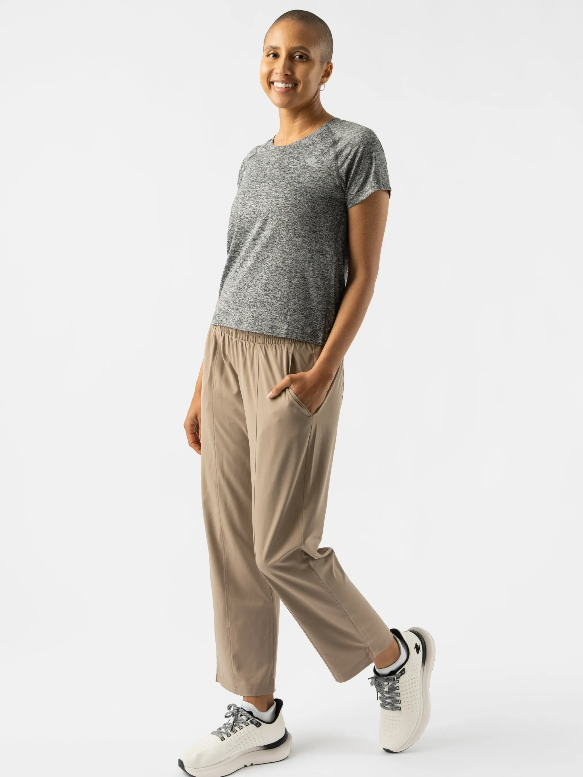 Feeling good and looking fine—that’s what you do best. Hop around or out of town in lifestyle pants featuringthe comfort of performance fabric. The relaxed fit and wider hip and leg openings allow more women to enjoy their sporty style.