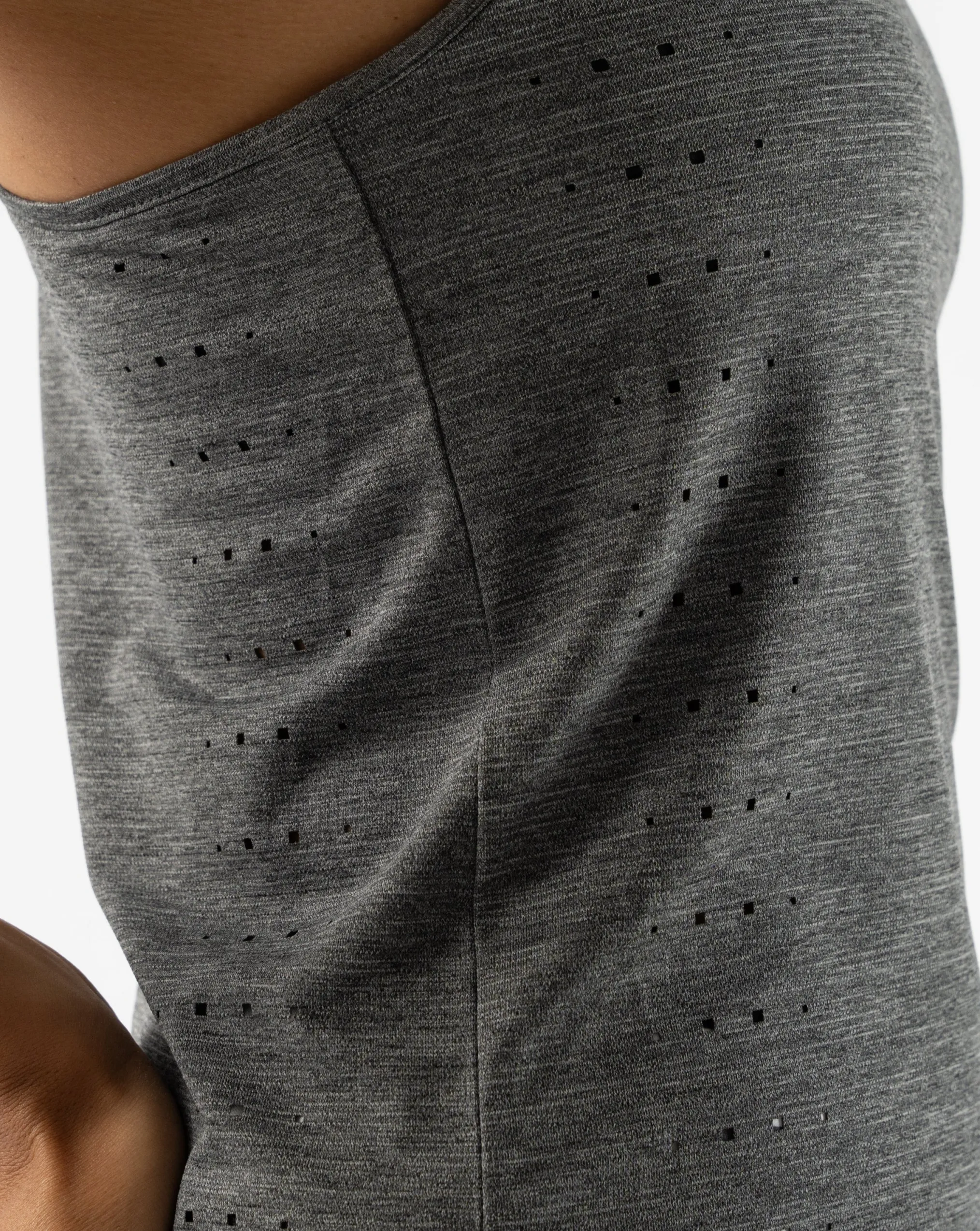 The flow is all you’ll know in our new tailored race tank. Laser-cut square perfs and anti-cling microtexture, plus other elevated details, keep you cool and comfortable from start to finish.